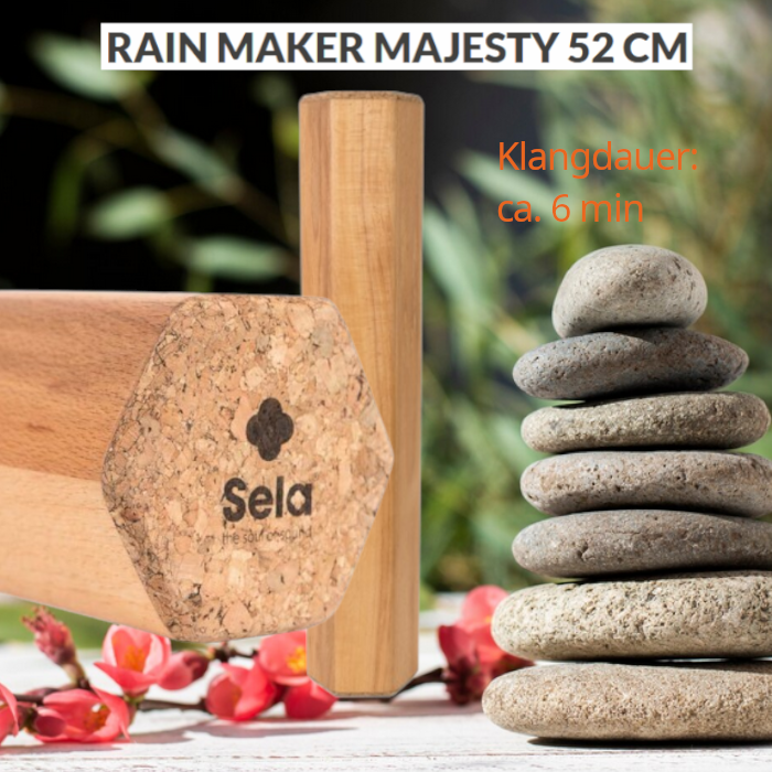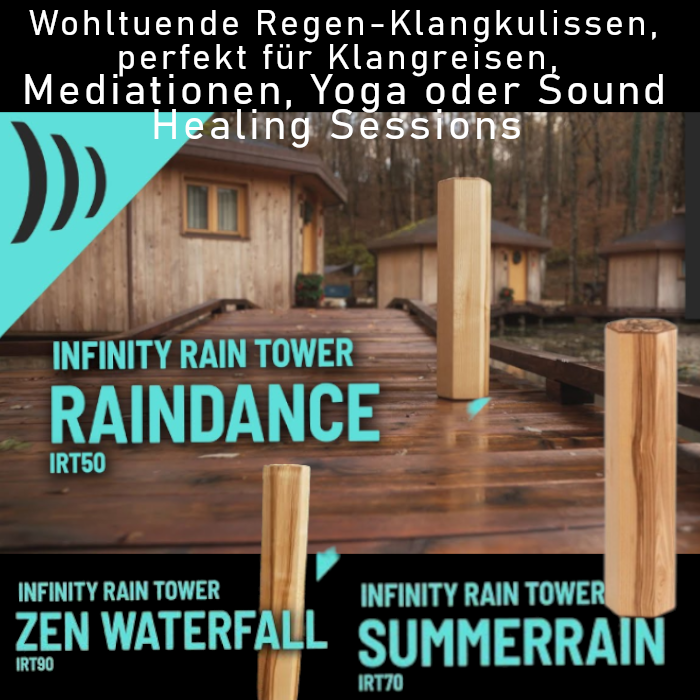 Den Regen genießen und trotzdem trocken bleiben: mit den atmosphärischen Rain Towers von Schlagwerk oder Rainmaker von Sela. Je nach Größe 5 – 22 Minuten (!) Klangdauer.